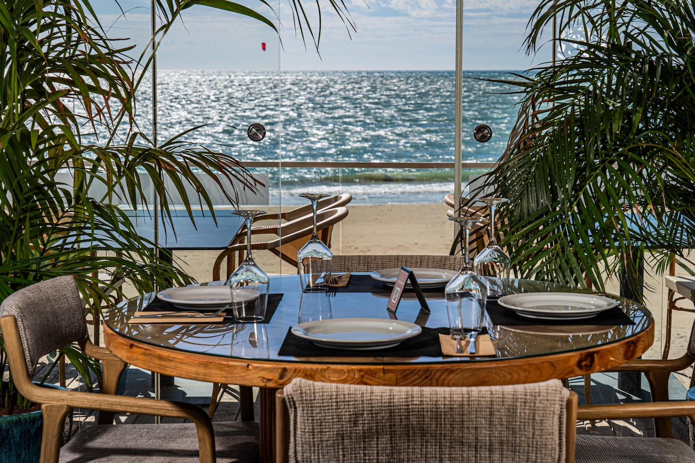 Ubicado frente a la playa, nuestro espacio combina cocina mediterránea, sabores internacionales y una cuidada selección de vinos y cócteles. Con una carta variada, música en directo y atardeceres incomparables, ofrecemos una experiencia pensada para disfrutar sin prisa, en un entorno único y acogedor.